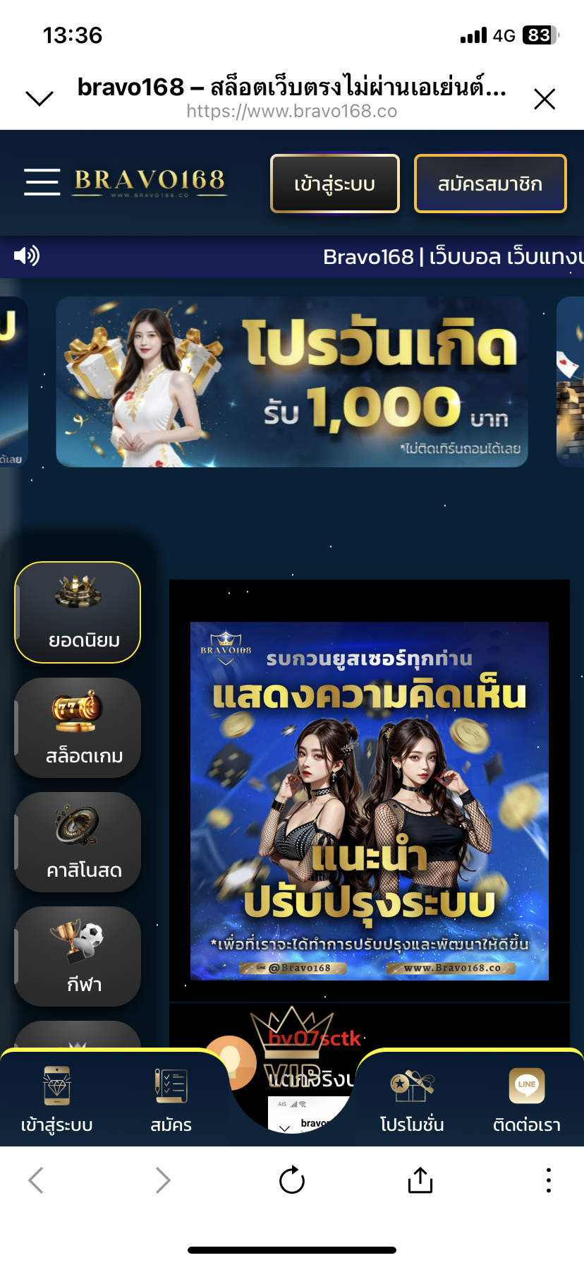 Bravo168 | เว็บบอล เว็บแทงบอลออนไลน์ บอลสเต็ป 2-12 คู่ เดิมพันขั้นต่ำ 10 บาท เรตราคาน้ำบอลดีที่สุด 4 ตังต์ พร้อมกับรายการแข่งขันเยอะที่สุดใน เอเชีย ค่าคอมมิชชั่น 1% เดิมพันขั้นต่ำ 10 บาท ระบบ auto สมัครบอลคาสิโน ฟรีเครดิตไม่มีขั้นต่ำ พนันบอลเว็บตรง ไม่ผ่านเอเย่นต์ https://Bravo168.co